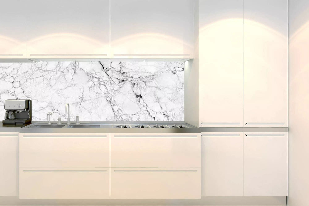 Fototapetes virtuvei ar lamināciju, pašlīmējošas plēve un flizelīns - Balts marmors (180x60 cm)