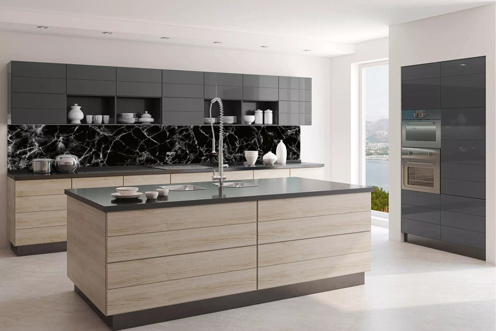 Fototapetes virtuvei ar lamināciju, pašlīmējošas plēve un flizelīns - Melns marmors (350x60 cm)