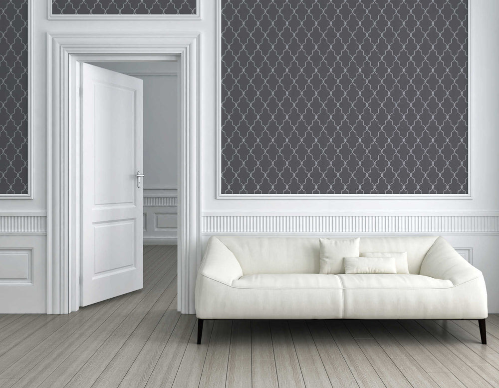 Klasiskās baroka tapetes ar ornamentu melnā krāsā, 1374033