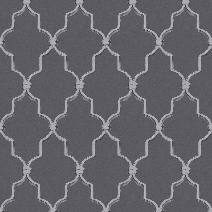 Retro tapetes ar elementiem melnā krāsā uz pelekā fona  AS 376813 AS Creation