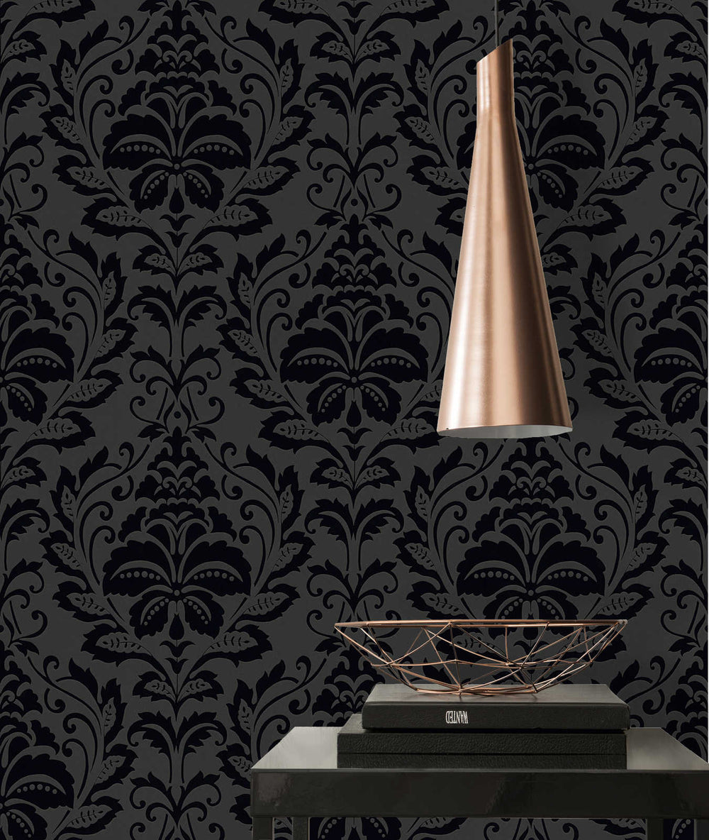 FLOCK tapetes ar Damaska rakstu - melnā krāsā, 1124445