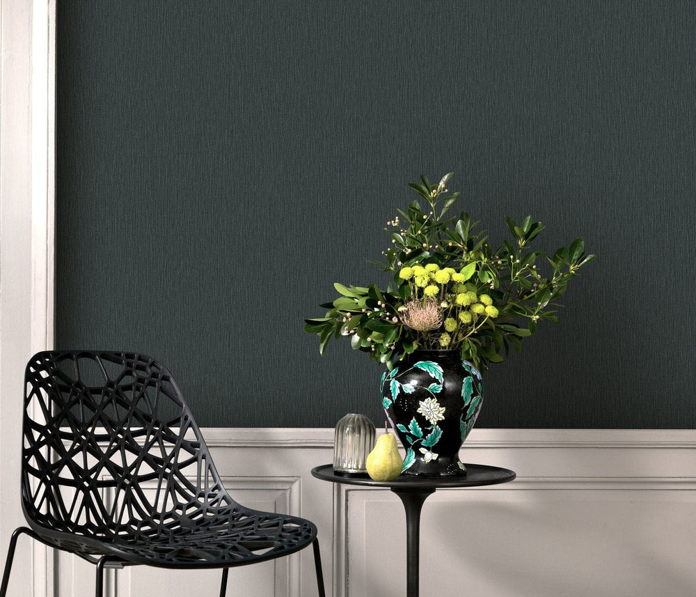 Melnas vienkrāsainas tapetes elegantai guļamistabai, 395663 AS Creation