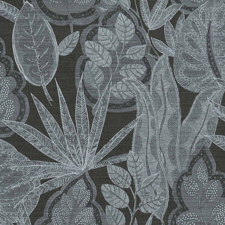 Tapetes ar tropiskam lapām melnā krāsā, Erismann, 1037115 Erismann