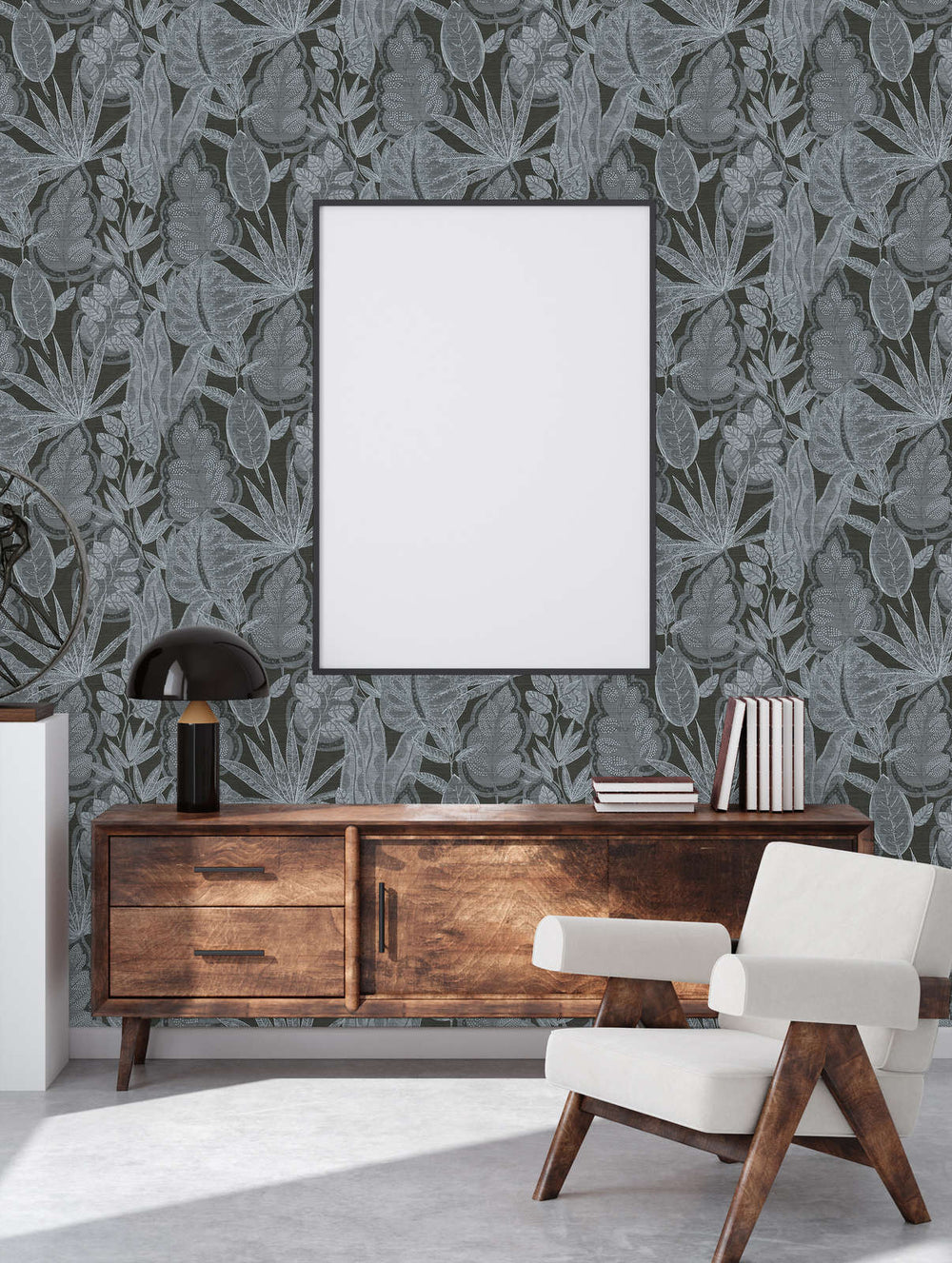 Tapetes ar tropiskam lapām melnā krāsā, Erismann, 3751473
