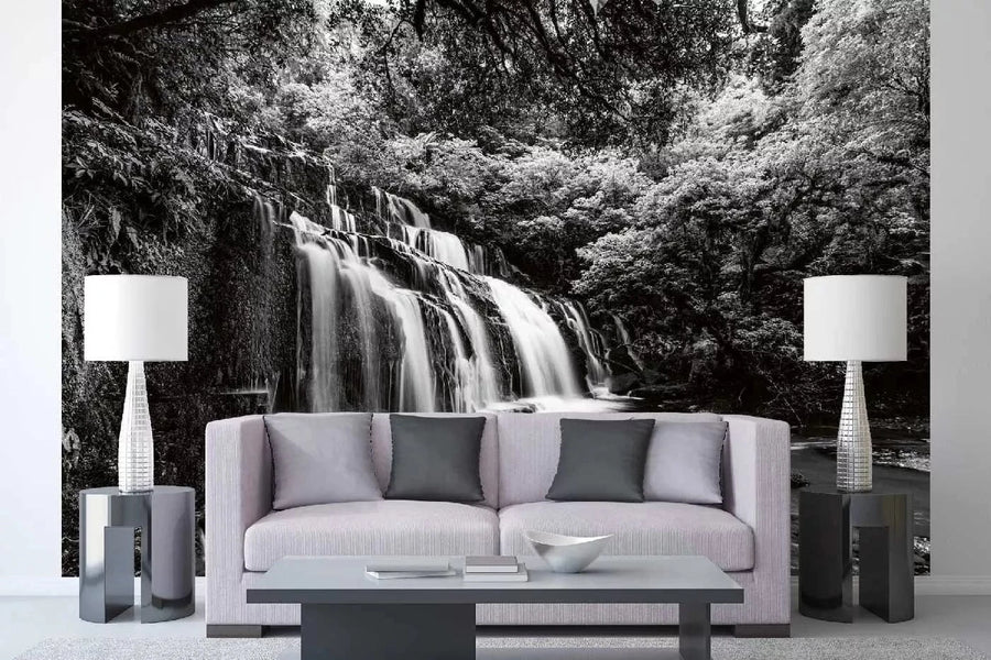 Melnbaltas fototapetes - Ūdenskritums pelēkos toņos - D387 D-ART