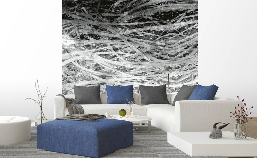 Melnbaltas fototapetes ar zāli vintāžas stilā  - D382 D-ART