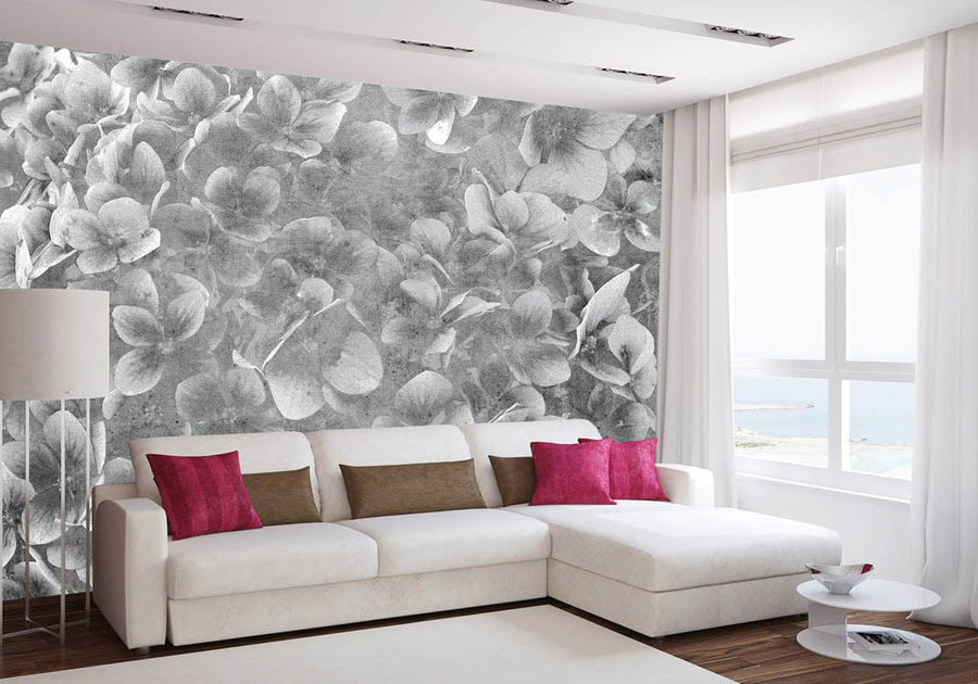 Pelēkas fototapetes ar ziedošiem ziediem, 375x250 cm D-ART