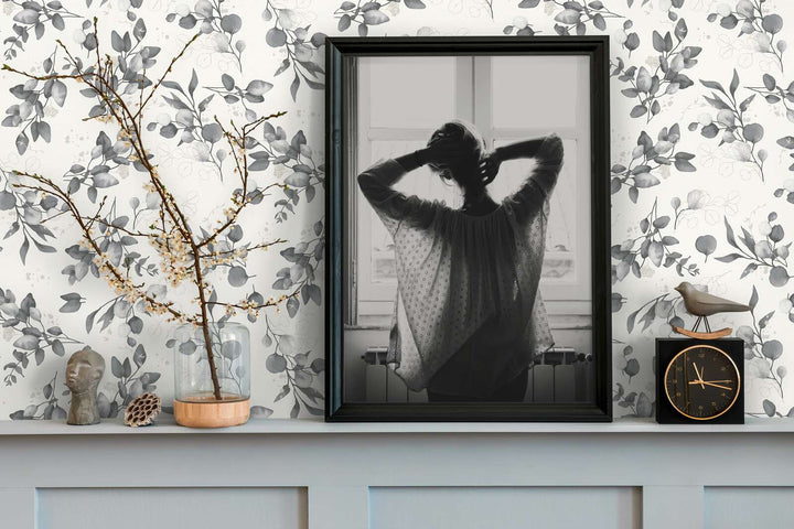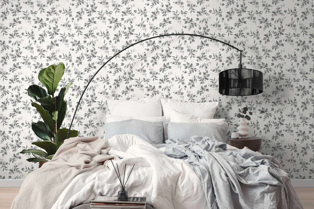 Neaustas ziedu tapetes ar spīdīgiem akcentiem – augstas kvalitātes flizelīna tapetes ar izmēru 0,53x10 m. Krāsa un apdare: Balta, peleka. Ideāli piemērotas eleganta un modernā interjera izveidei.