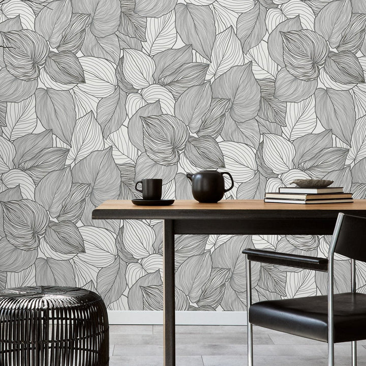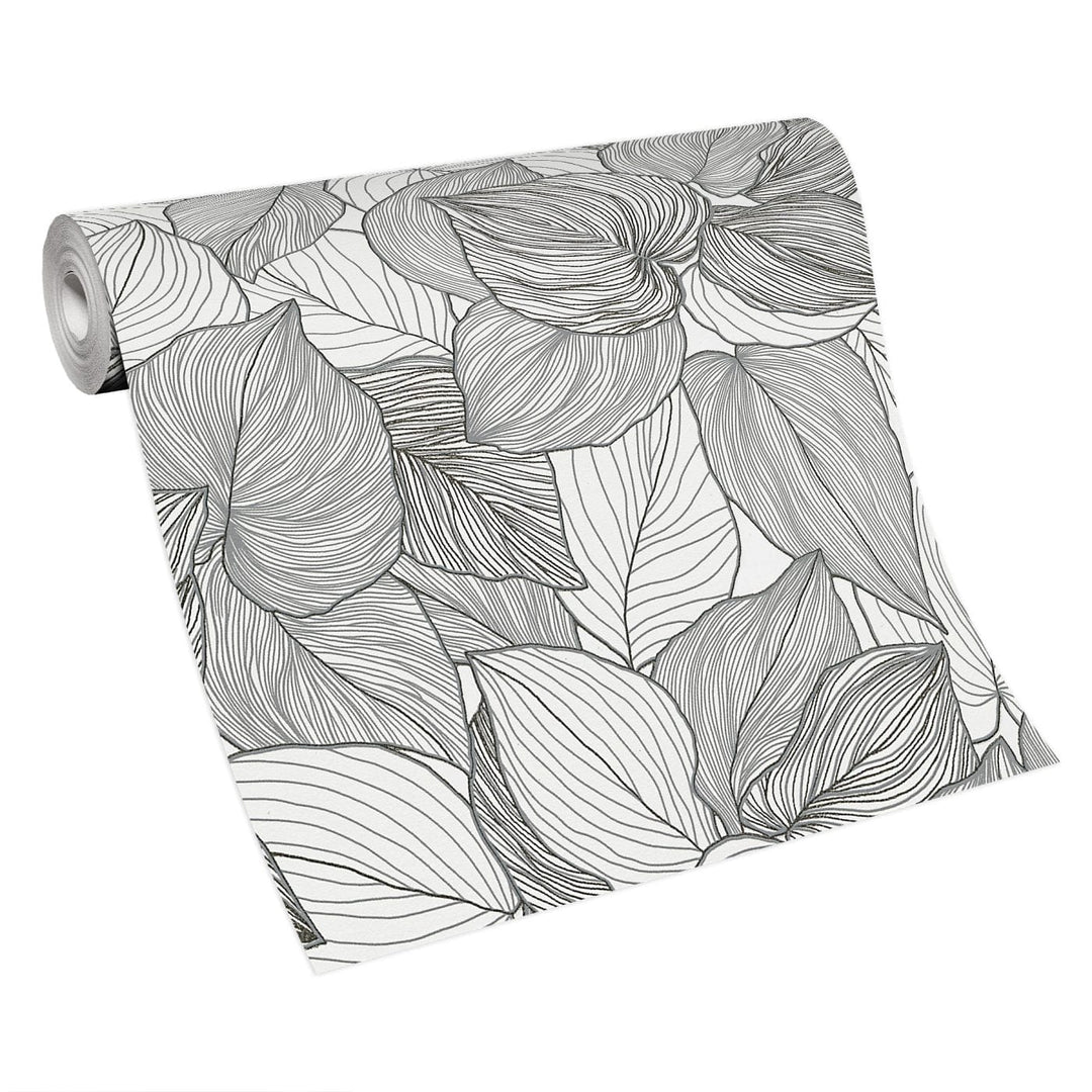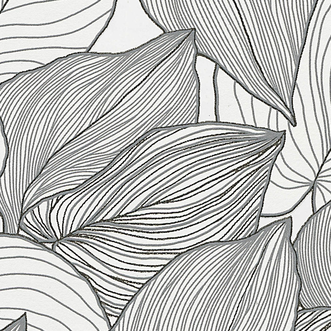 Tapetes ar lielām lapām un nelielu spīdumu, melnbaltas - 3753436, 🔖
