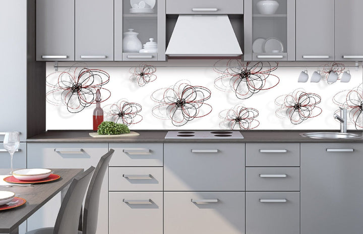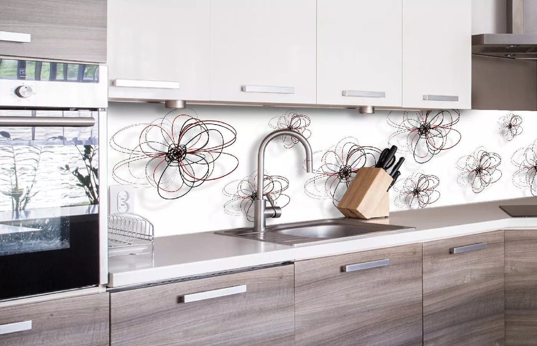 Fototapetes virtuvei ar lamināciju, pašlīmējošas plēve un flizelīns - Stilizēti ziedi (260x60 cm)
