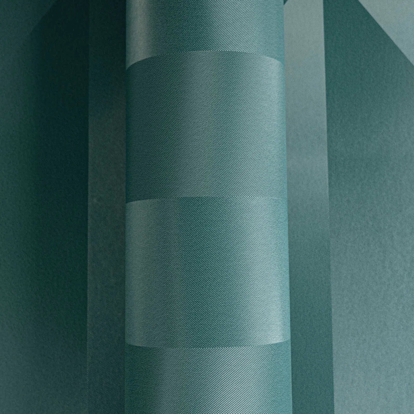 Tapetes motīvs attēlo ģeometrisku rakstu no garenām, vertikāli izkārtotām sešstūrveida figūrām, kas izkārtotas kā trīsdimensiju mozaīka. Figūras veido dažādas, skaidri iezīmētas zonas nedaudz atšķirīgos, klusinātos zaļos toņos. Pārejas starp tumšākiem un gaišākiem zaļā toņiem rada trīsdimensiju efektu, kas pievilina skatienu un rada smalku dziļuma efektu. Stils ir moderns un minimālisma, ietekmēts no grafiskiem elementiem no pagājušā gadsimta vidus, bet tajā pašā laikā ir mūžīgs. Krāsu gamma rada mieru un eleganci, piešķirot telpai harmonisku, bet dinamisku atmosfēru.