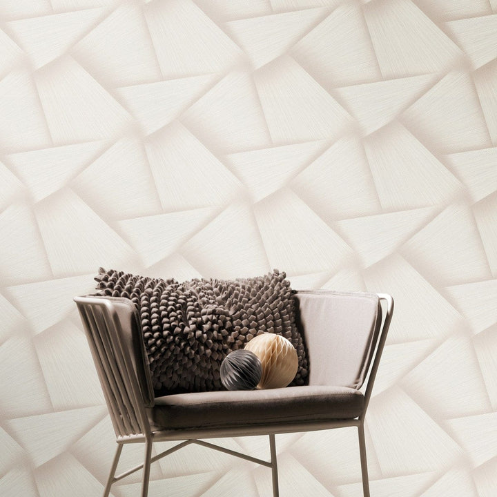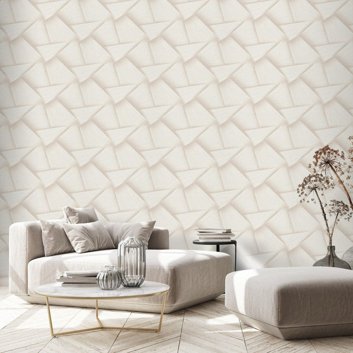 Atklājiet Erismann modernas tapetes ar lielu ģeometrisku rakstu krēmkrāsā un metālikā, kas piešķir jūsu telpai elegantu un mūsdienīgu izskatu. Šis pārsteidzošais pītais Pose dizains valdzina ar ekstravagantu 3D efektu, kas apburzina jūsu maņas un pārvērš telpu aizraujošā pīto rakstu labirintā.