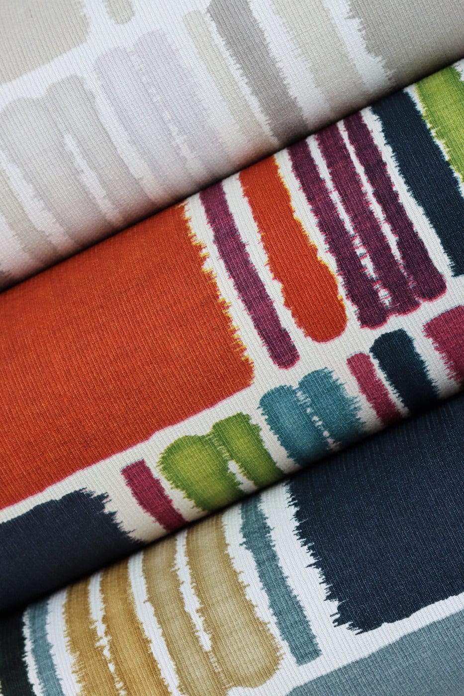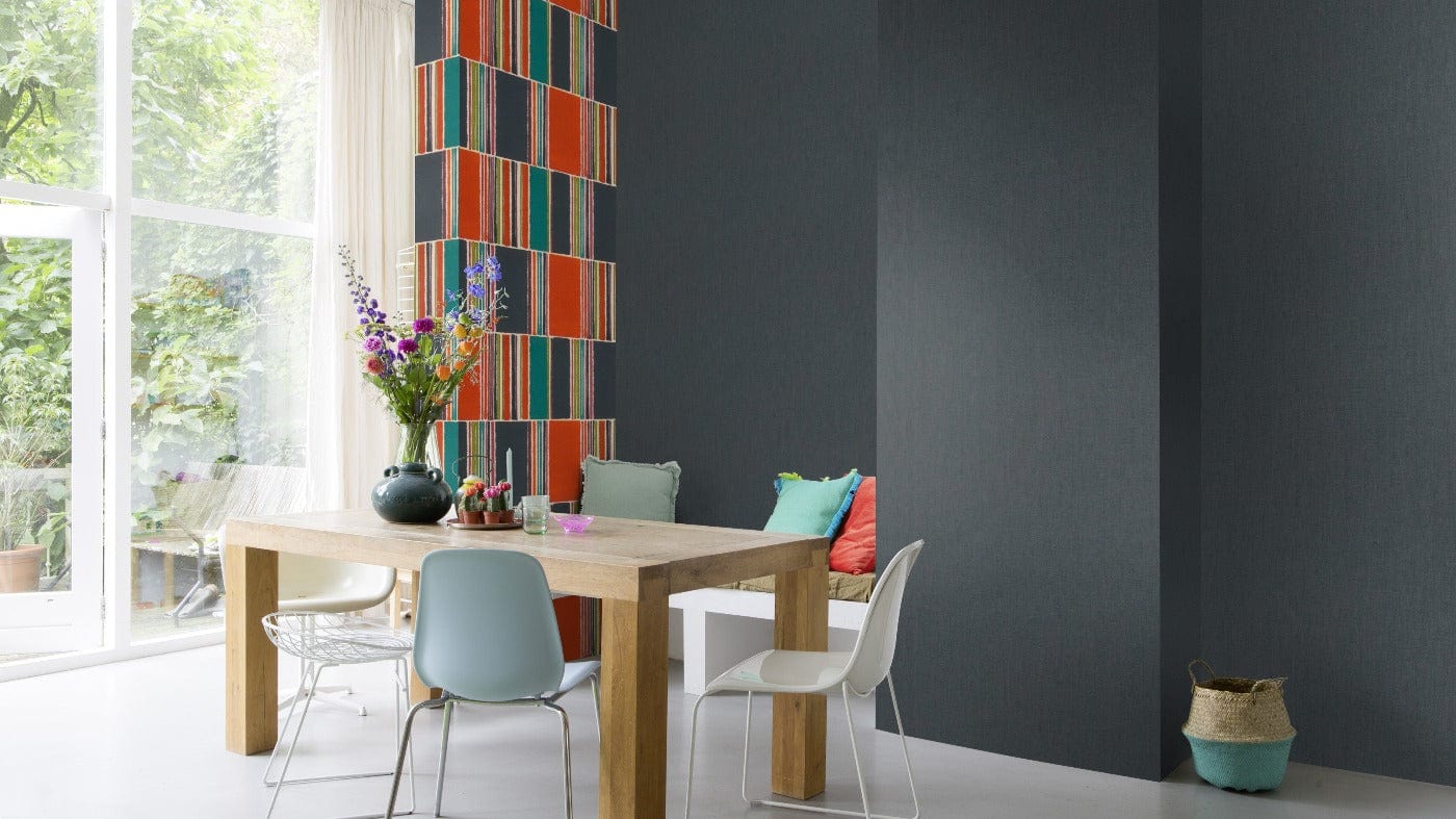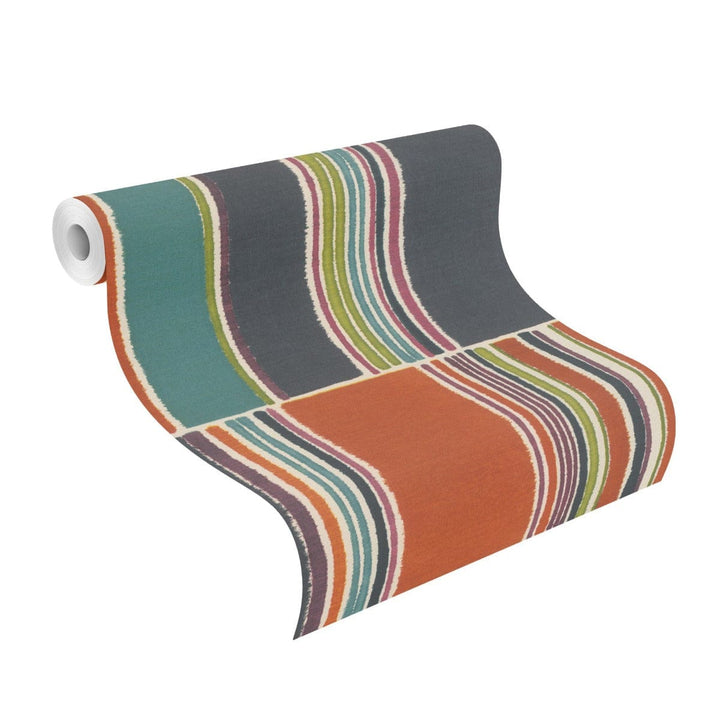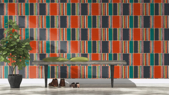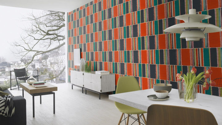 Mūsu sienas ir gatavas siltām krāsām un izsmalcinātiem rakstiem. Līnijas un taisnstūri sarkanīgi oranžā, Bordo violetā, zāles zaļā, tirkīza zilā un zili melnā krāsā ir izcelti uz krēmīgi balta fakturēta fona. To krāsu gradienti rada akvareļgleznas efektu. Nevilcinieties. Uzlieciet to uz savas sienas jau šodien!