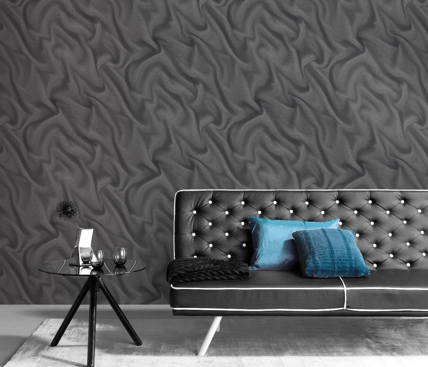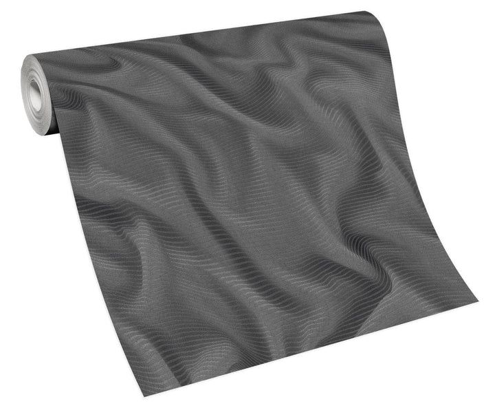 Tapetes ar viļņiem melnā krāsā un 3D efektu, spīdīga virsma, 3707173