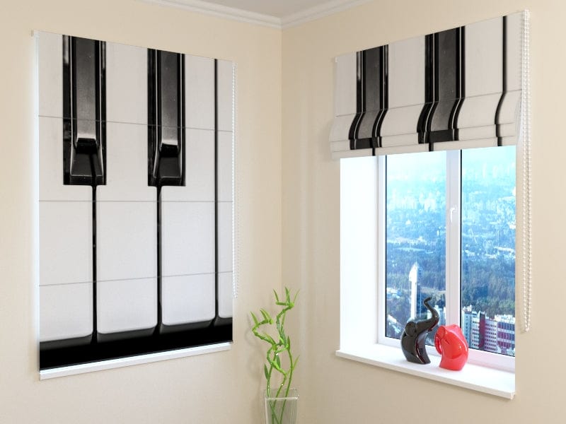 Žalūzijas ar izteiksmīgu melnbaltu klavieru taustiņu dizainu
