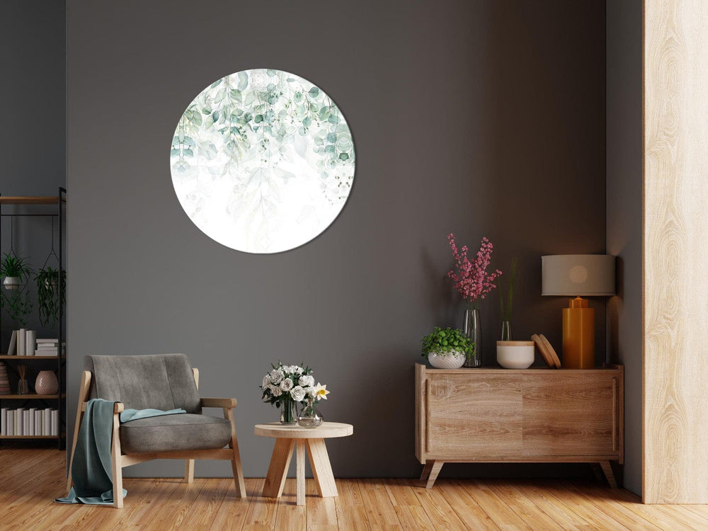 Apaļa glezna - Maigs dabas pieskāriens, ar zaļām lapām, 151048 G-ART