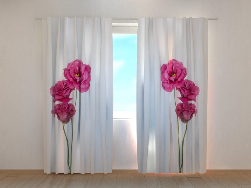 Dienas un nakts aizkari - Valdzinoši lizantes ziedi uz balta fona