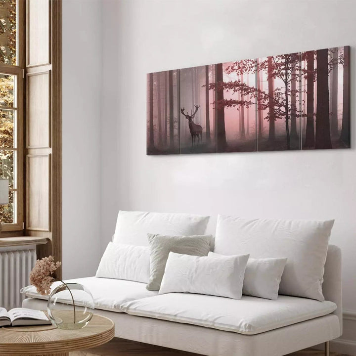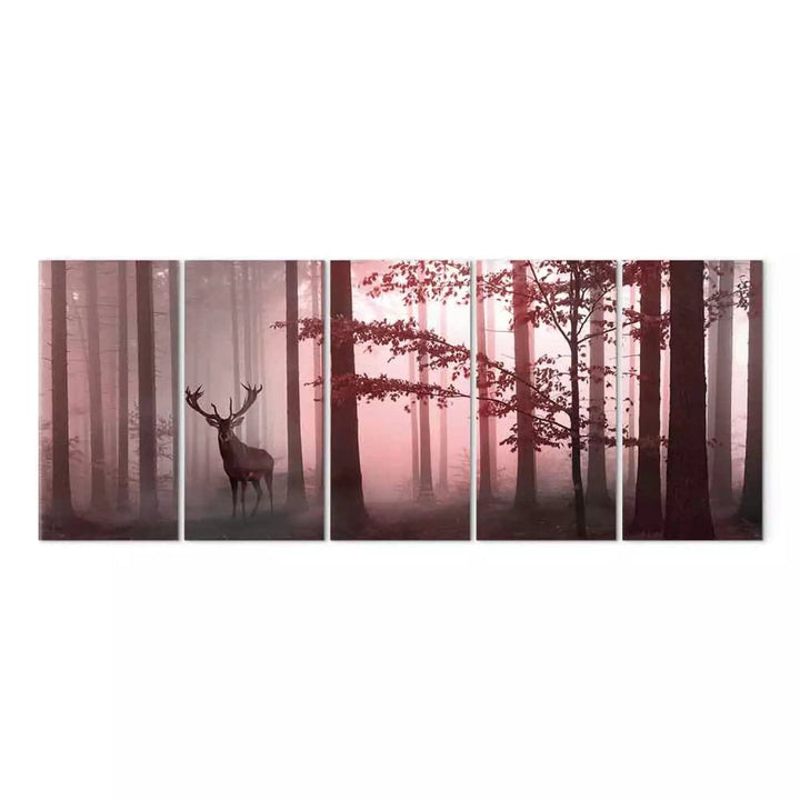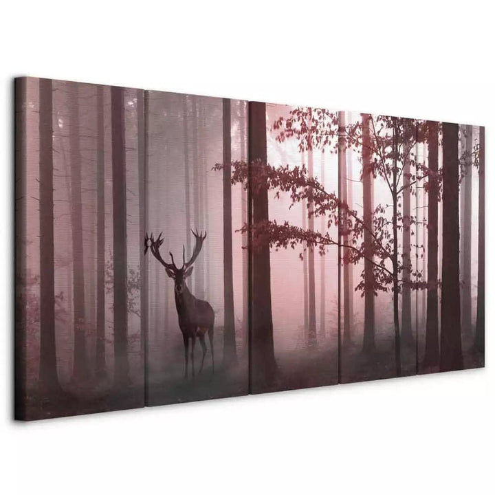 Kanva ar dabu - briedis mežā, rozā toņos, (x 5), 125521