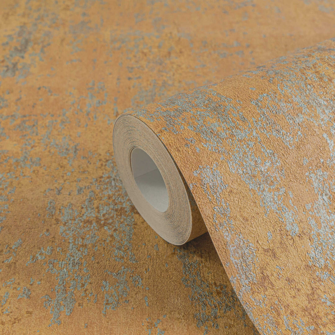 Vienkrāsainas tapetes ar apmetuma rakstu - oranžā krāsā - 2777570