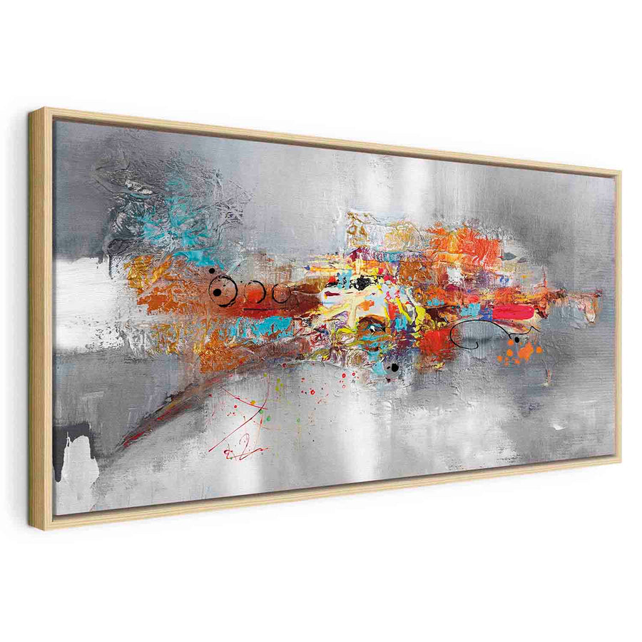 Glezna melnā koka rāmī - Abstrakcija pelēkos un zeltā toņos, 161996