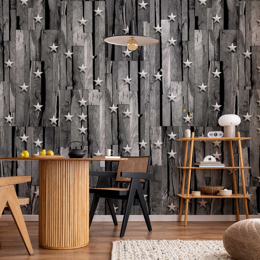 Tapetes ar zvaigznēm uz tumši pelēka koka fona, 89655