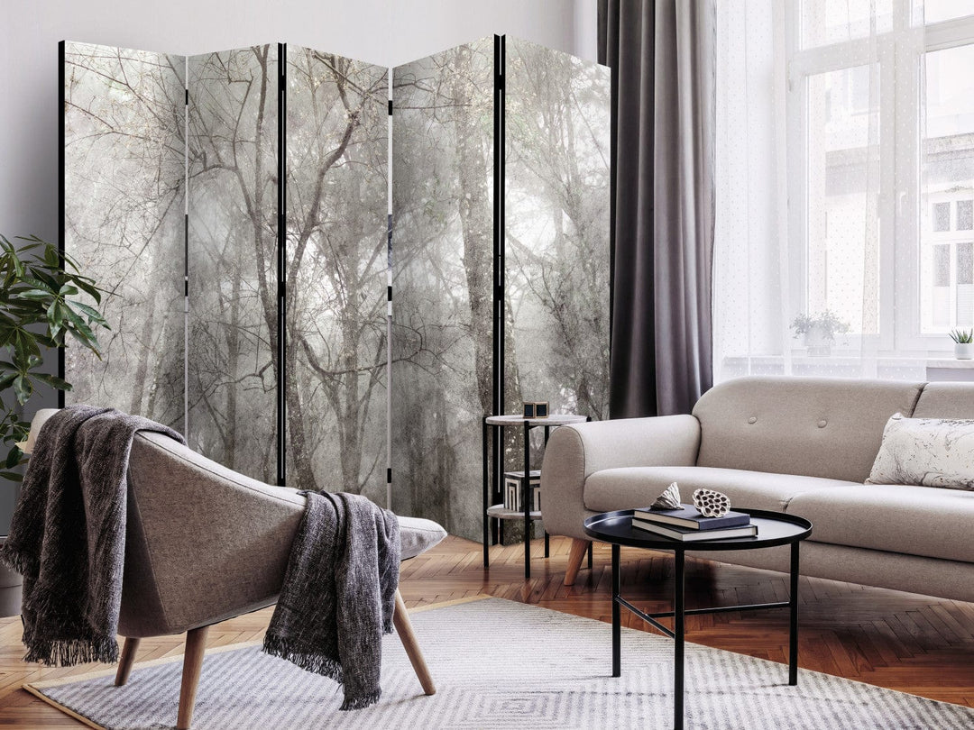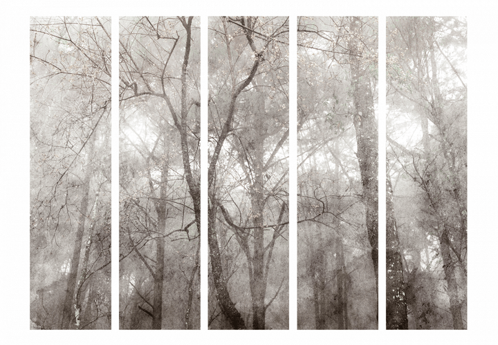 Aizslietnis ar meža motīvu pelēkos toņos un vintāžā stilā – no 5 paneļiem.