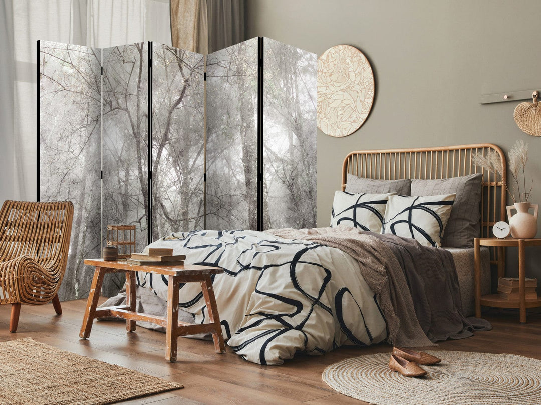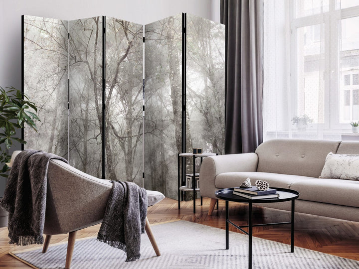 Aizslietnis - ainava ar meža skatu pelēkos toņos, 138521 - 225x172 cm
