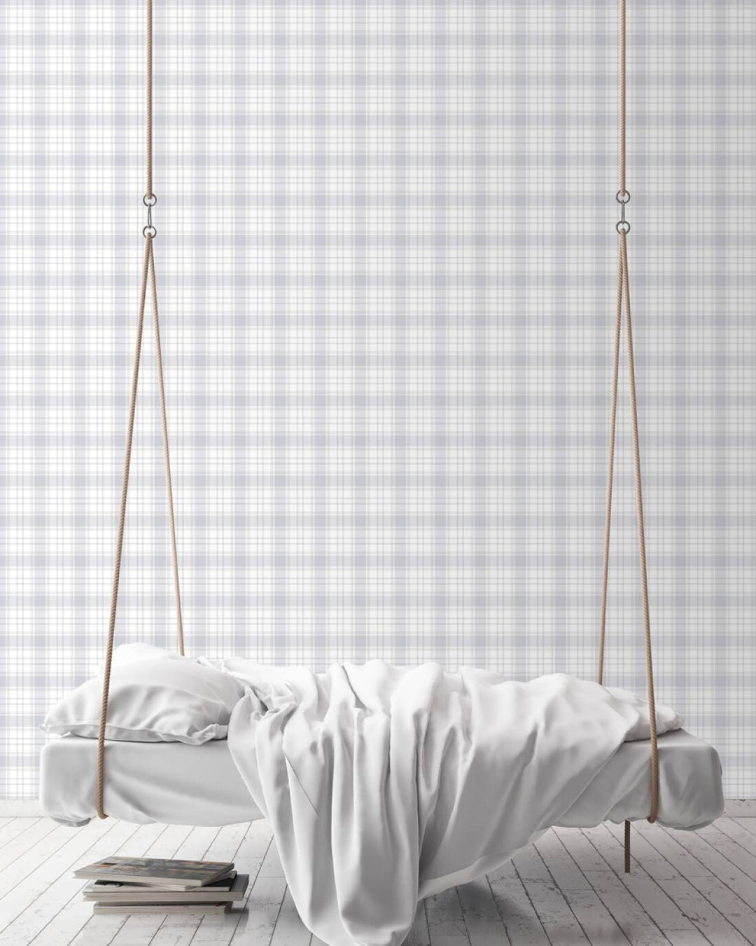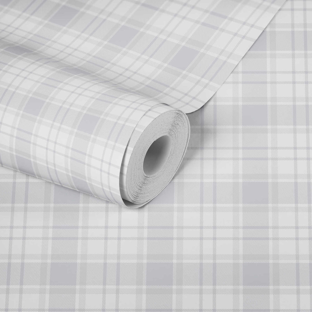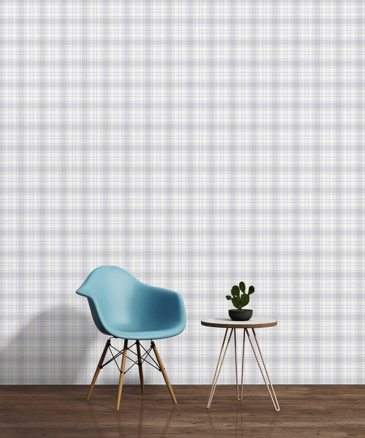 Tapetes bērnu istaba ar tartana rakstu – pelēkos toņos, 1350445, Bez PVC 🌿