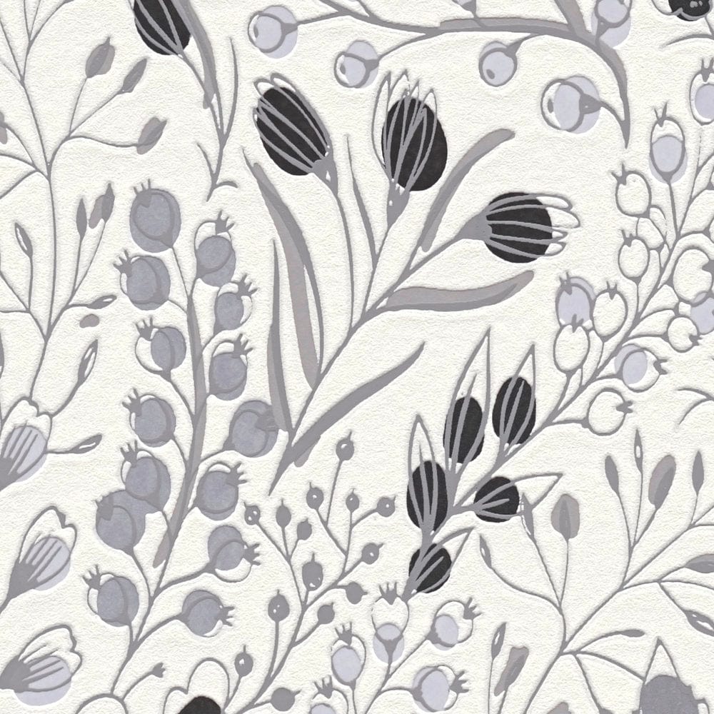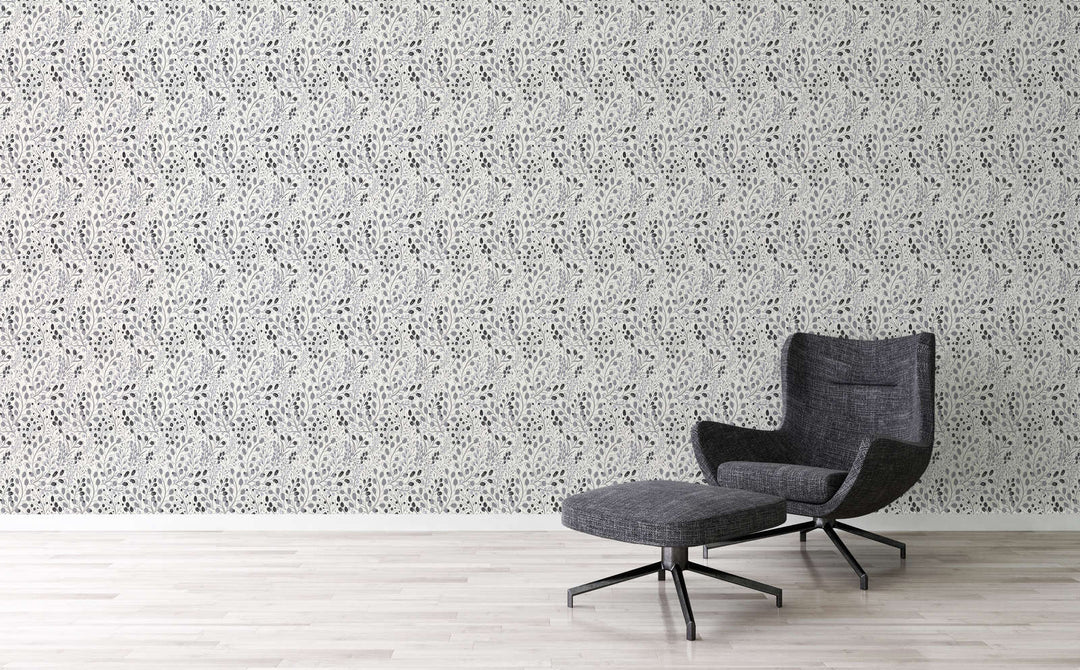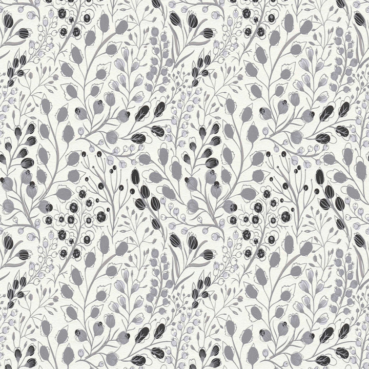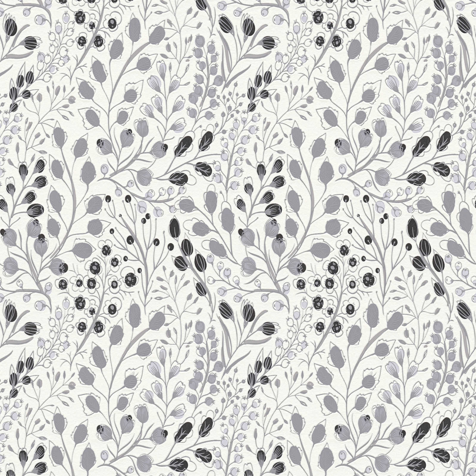 Tapetes ar zīmētu ziedu rakstu: pelēka, balta, melna - 1366571