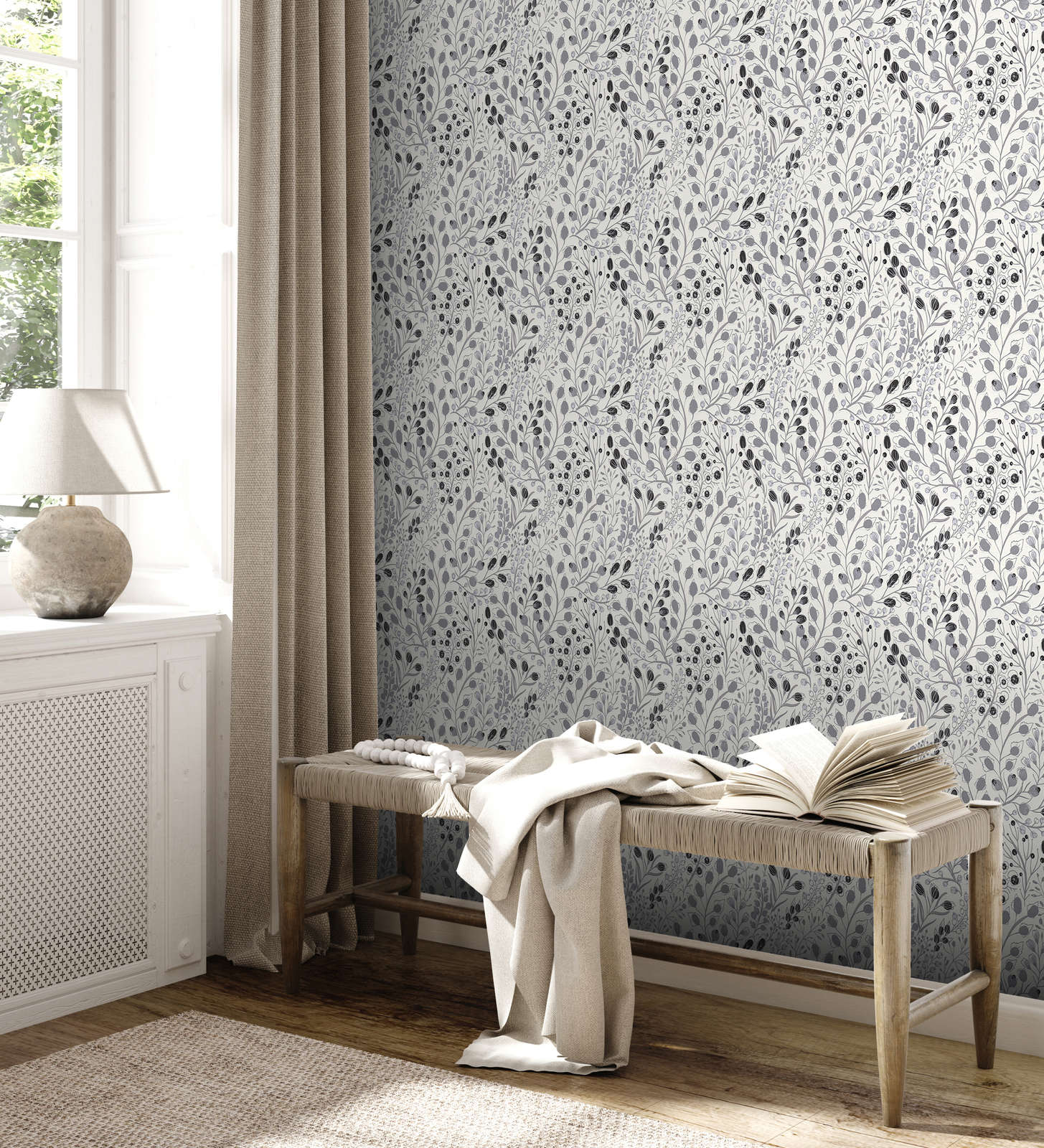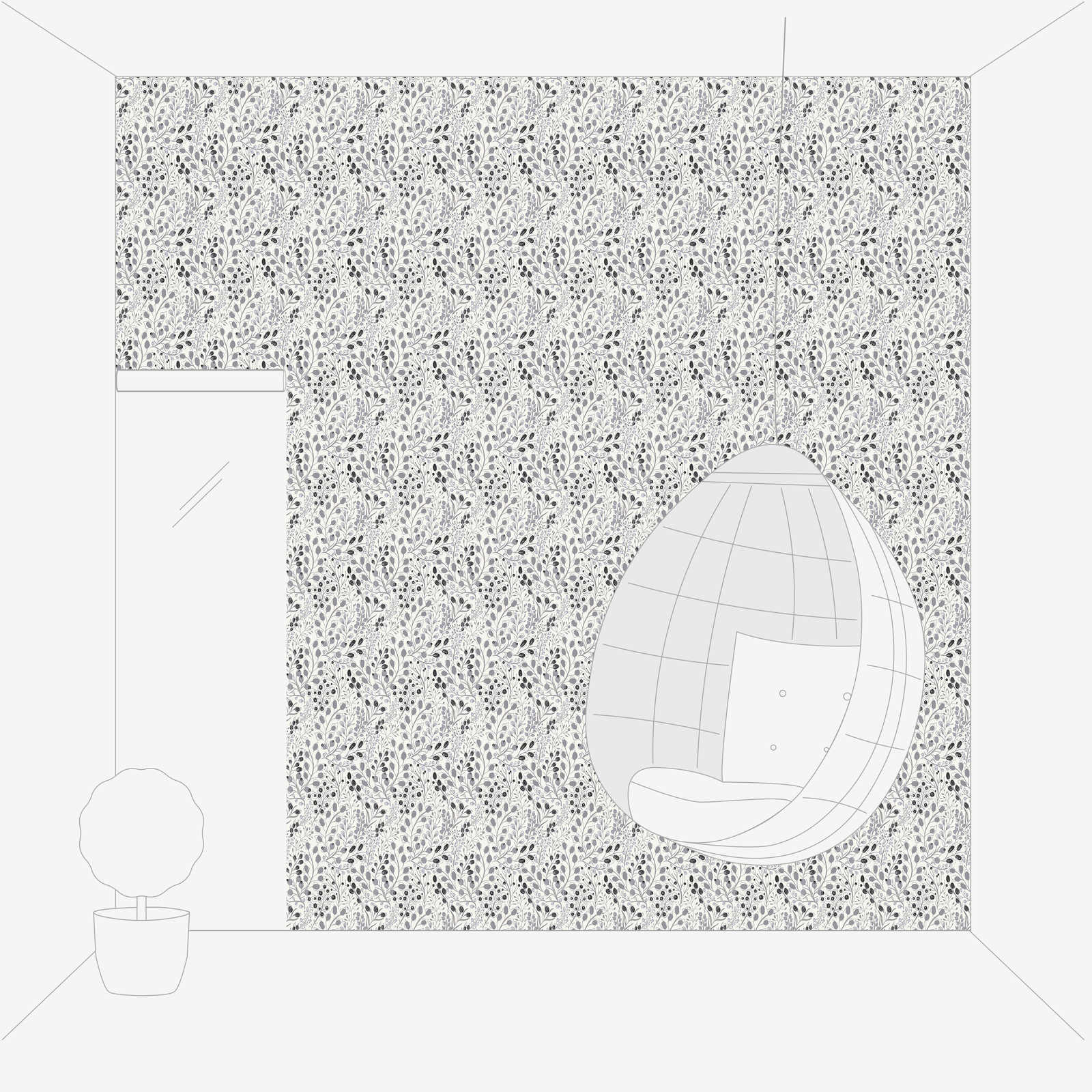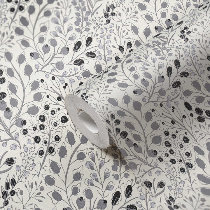 Tapetes ar zīmētu ziedu rakstu: pelēka, balta, melna - 1366571