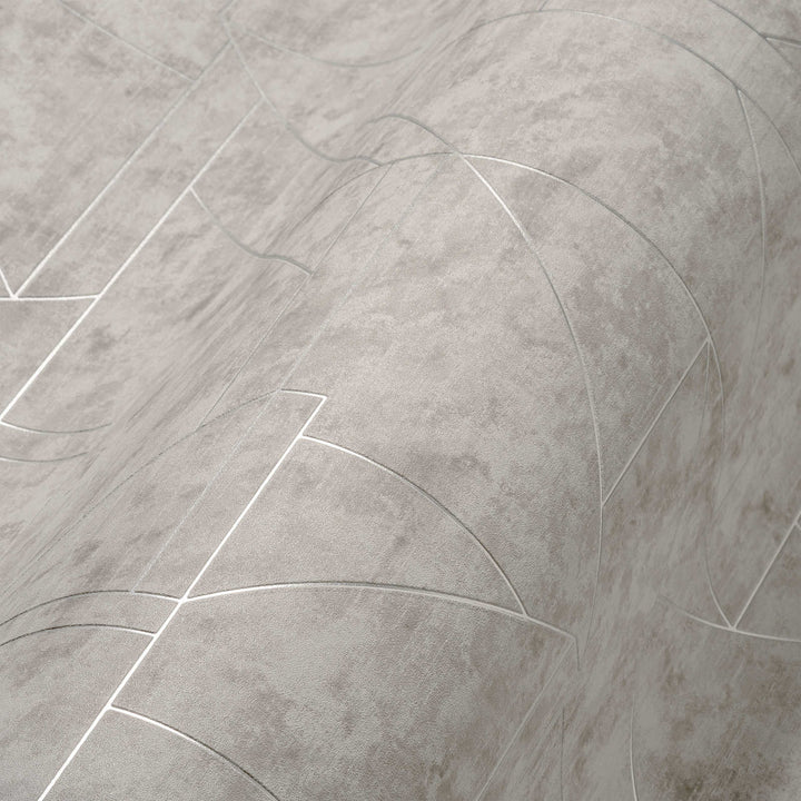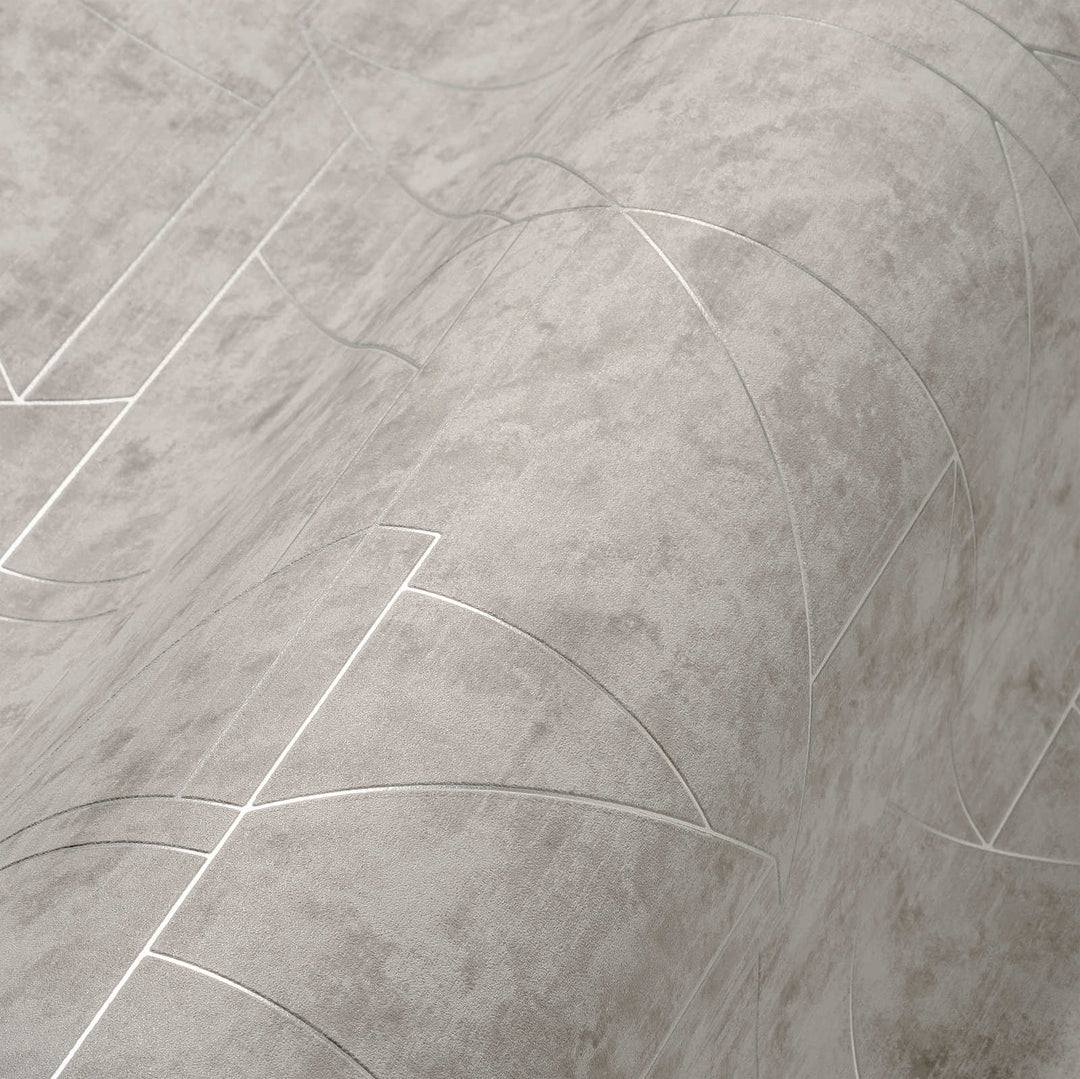 Grafiskas tapetes ar modernu līniju rakstu, pelēkā krāsā, 1374017