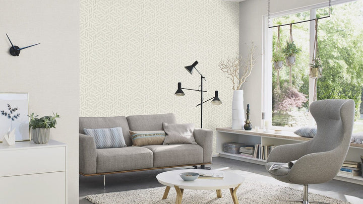 Atveriet jaunu lapu attiecībā uz sienas dizainu. Šeit lapas ir intīmā un vienmērīgā veidā izkārtotas siltā gaiši pelēkā krāsā uz alabastra baltā fona. Smalkā lina tekstūra piešķir sienām papildu patīkamu svaigumu un tādējādi rada mājīgu atmosfēru.