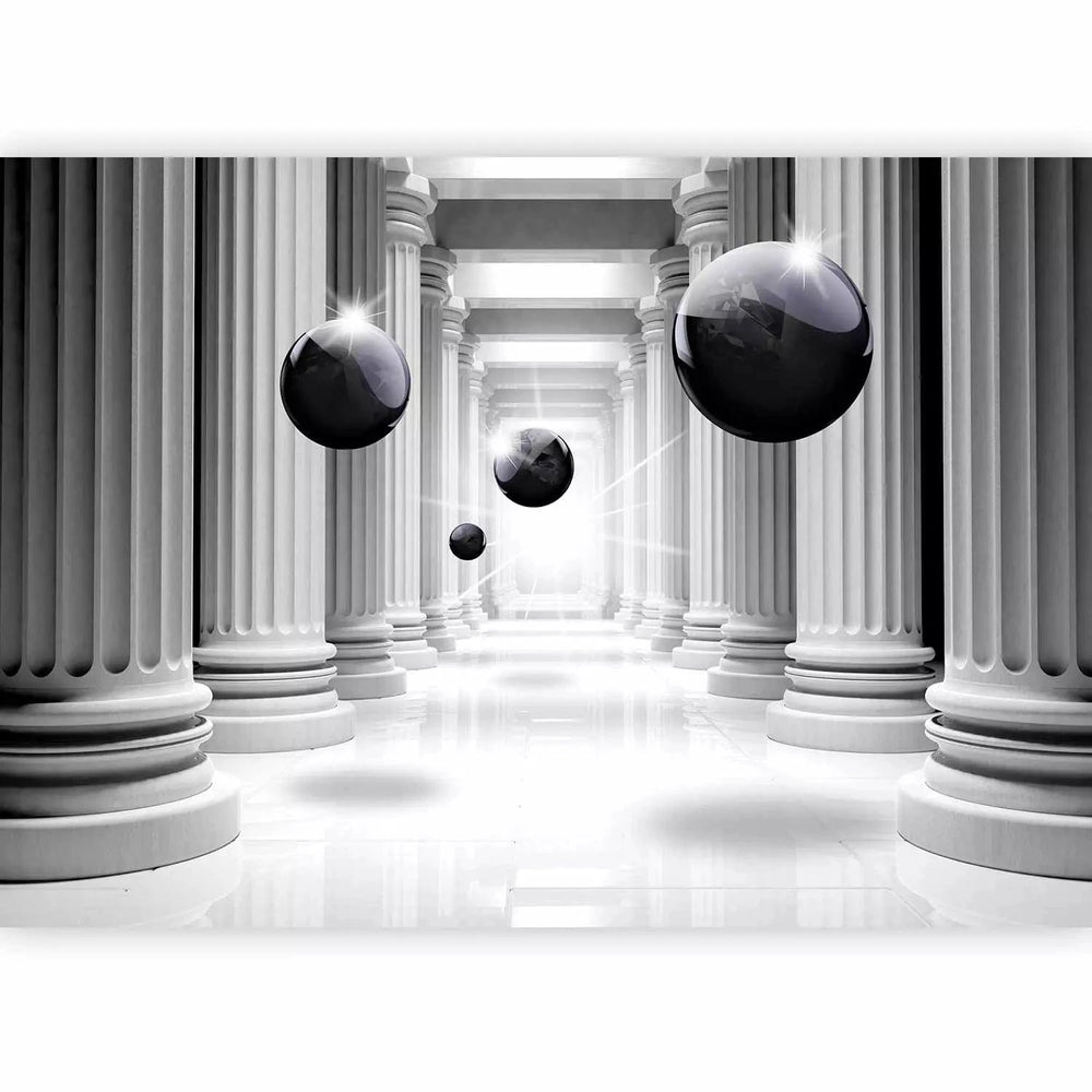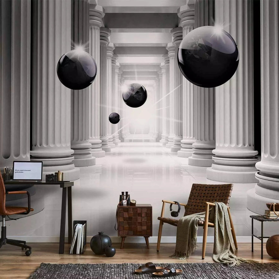 3D dototapetes - balts koridors ar kolonnām un melnām sfērām, 66186 Tapetenshop.lv