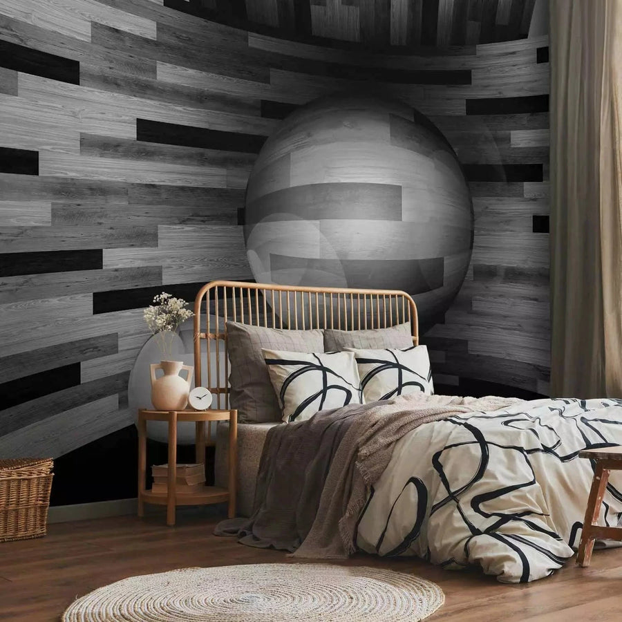 3D fototapetes ar perspektīvu - Pelēka koka sfēra, 97060 Tapetenshop.lv
