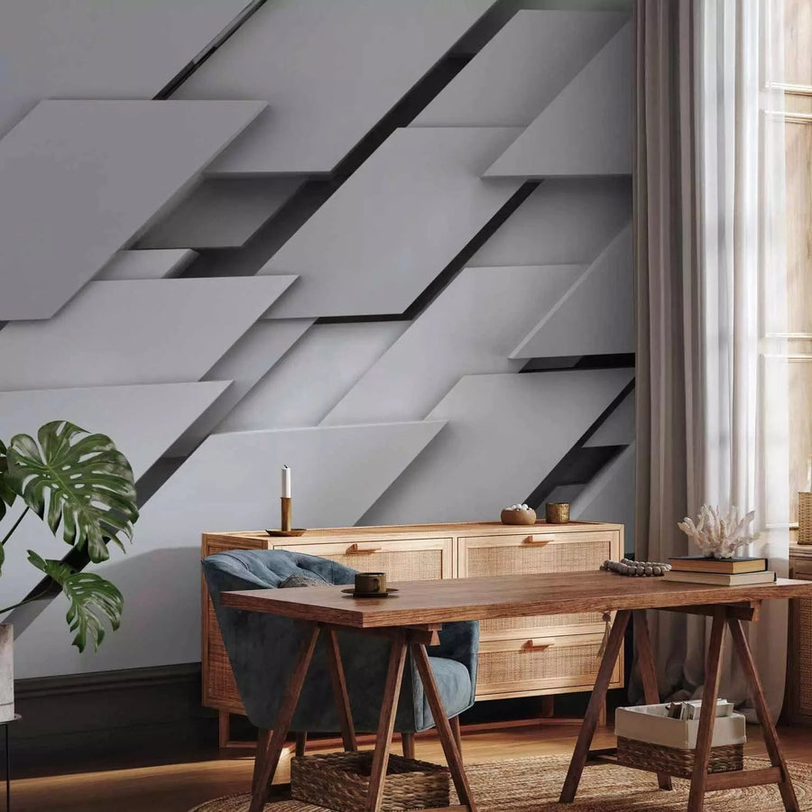 3D fototapetes ar perspektīvu pelēkā krāsā - Trijstūru harmonija, 95898 Tapetenshop.lv