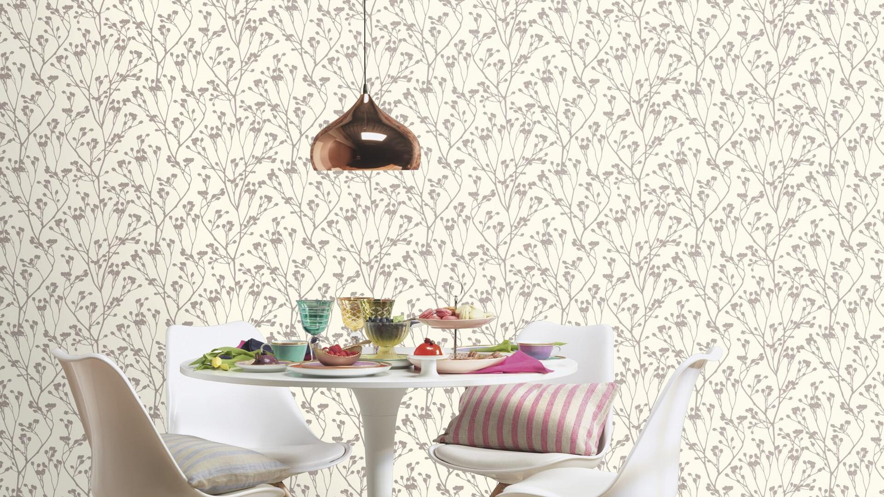 Ja vēlaties mājoklī ienest augus, bet jums nepatīk ziedu raksti un vēlaties eleganci, šī teksturētā tapete ir lieliska izvēle. Abstraktie zari spīdīgā sudraba krāsā uz balta, bet matēta un strukturēta fona piesaista visu skatienu. Pateicoties gaišajam krāsojumam, tapetes telpā rada arī draudzīgu, aicinošu atmosfēru.