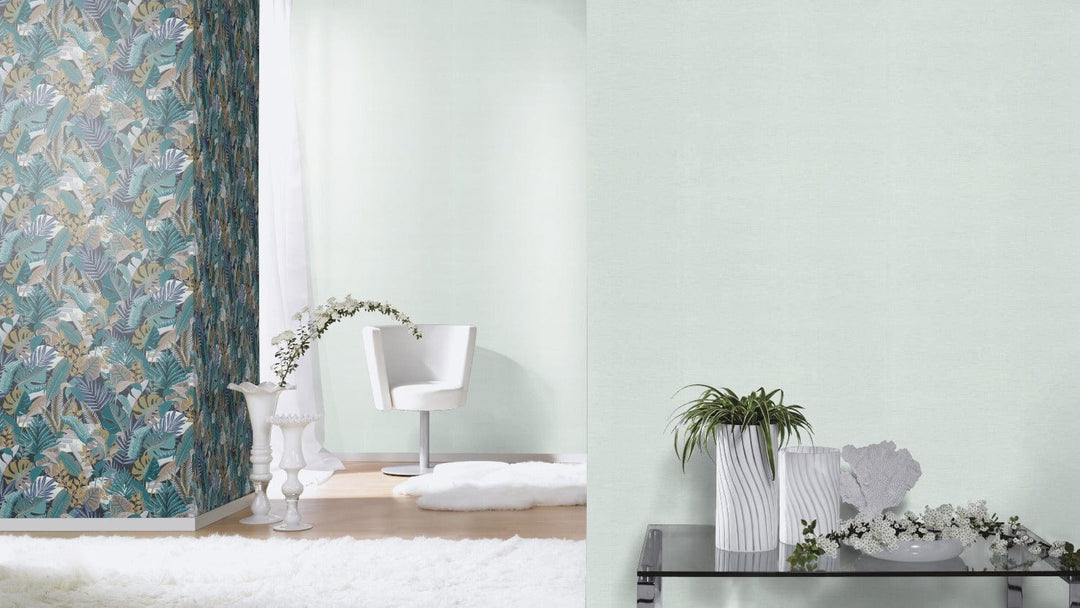 Paveiktais: svaigs pasteļzils izskats uz sienas ātri rada labu atmosfēru telpā. Ielūkojieties tuvāk, un jūs atklāsiet maigo tekstūru, kas vienkrāsainam tapetēm piešķir dabisku raksturu. Ideāls papildinājums rakstainajiem kolekcijas sienu segumiem, košiem aksesuāriem un dabīgiem materiāliem, krāsainiem paklājiem un samtainiem spilveniem. Vienkārši kombinējiet un baudiet.