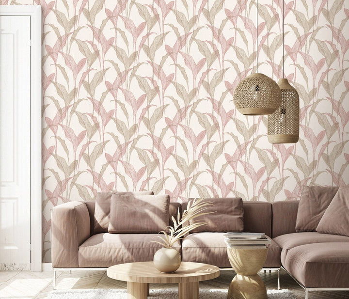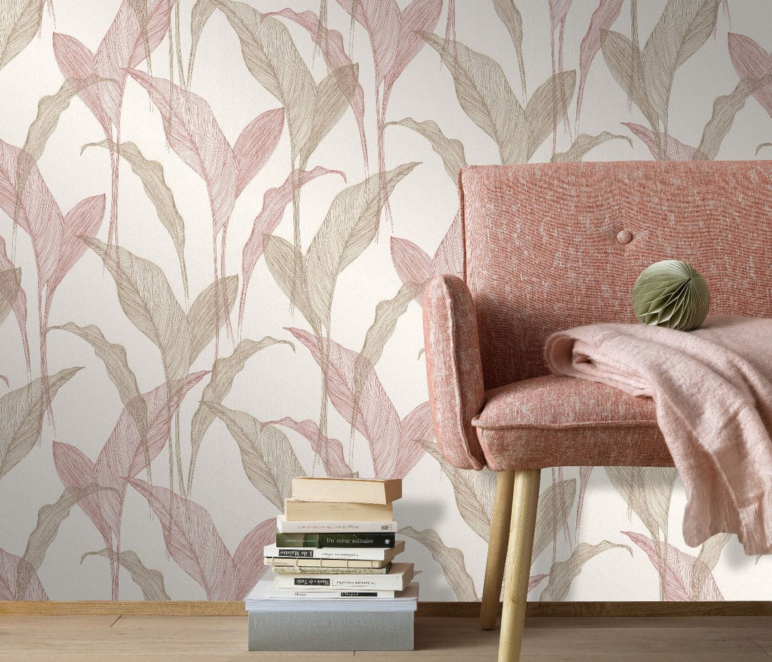 Šai botāniskajai tapetei ir skaistas zelta, krēmkrāsas un rozā lapas, kas piešķir satriecošu, dabisku izskatu. Ideāli piemērotas jebkuram interjera dizaina projektam.