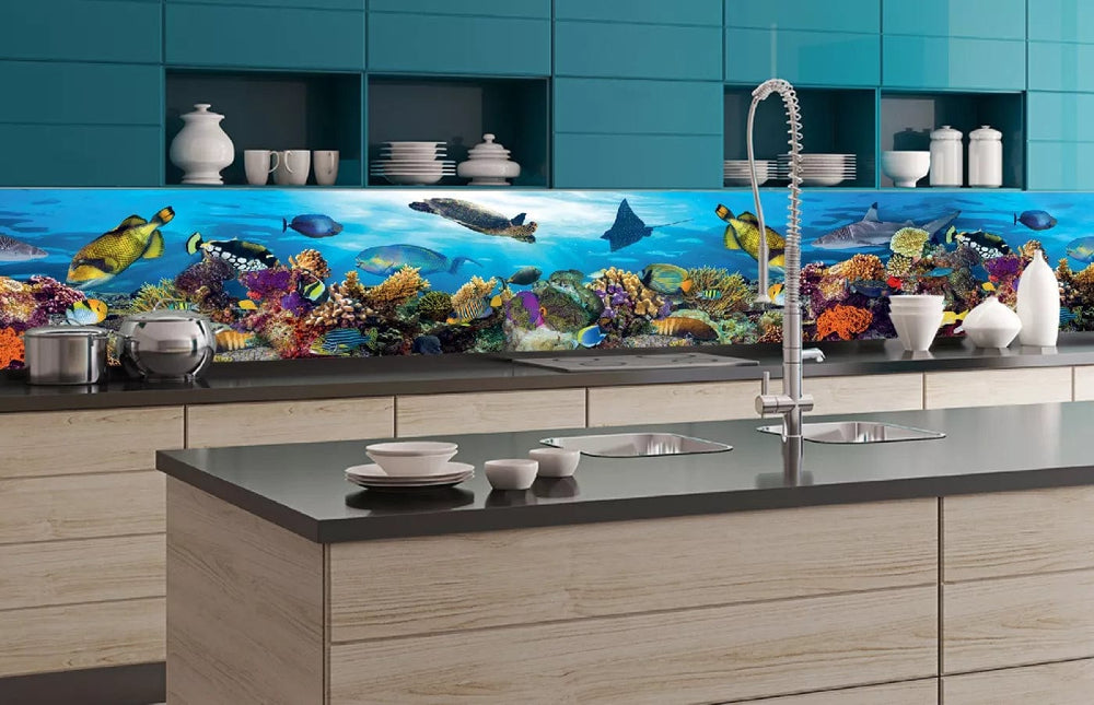 Fototapetes virtuvei ar lamināciju, pašlīmējošas plēve un flizelīns - Koraļļu rifs (350x60 cm)