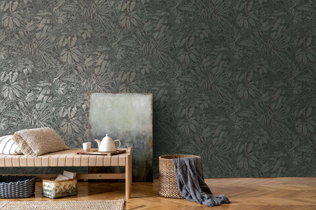 Džungļu tapetes ar vieglu tekstūru tumšos toņos, 1404524