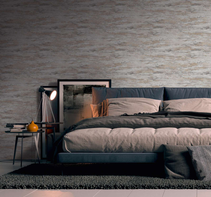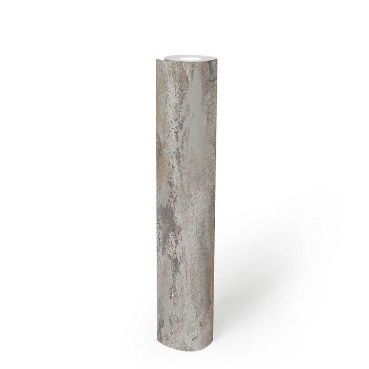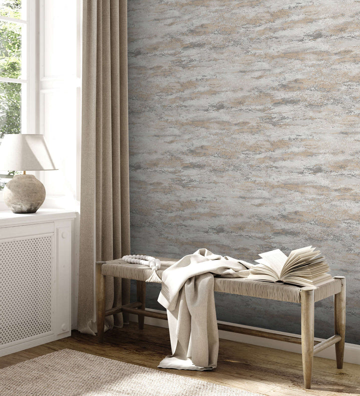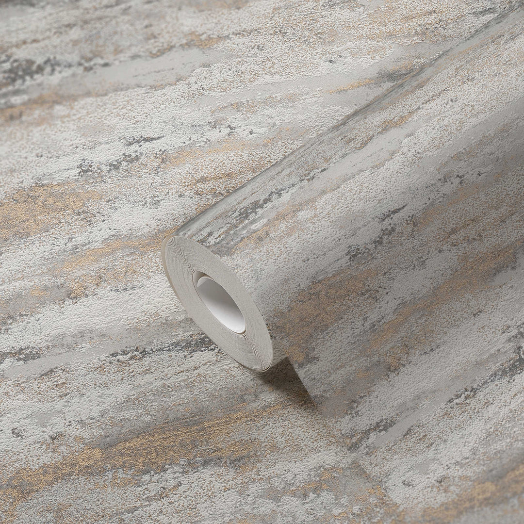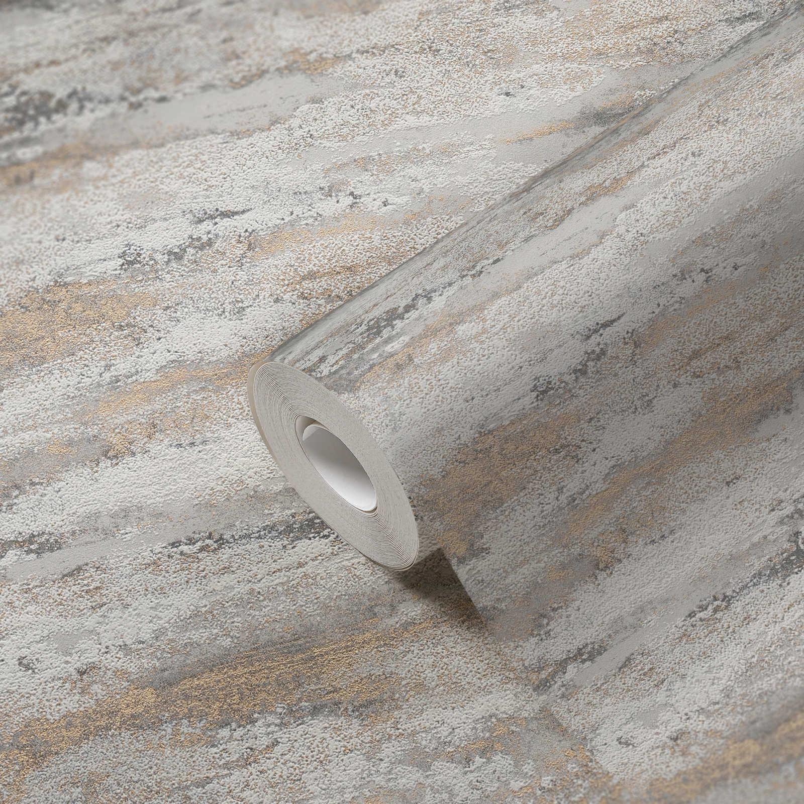 Tapetes ar vieglu viļņotu rakstu un mirdzumu: krēma, pelēka, zelta, 1372417, 🚀