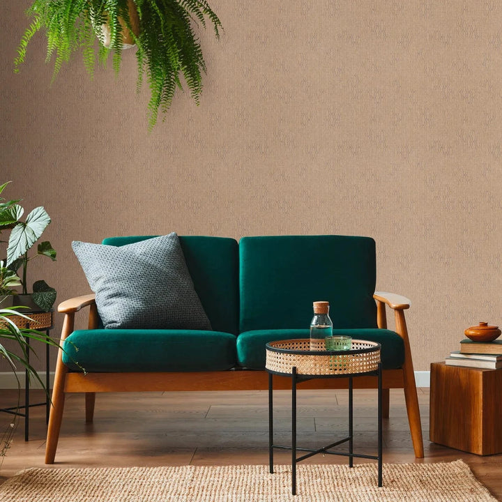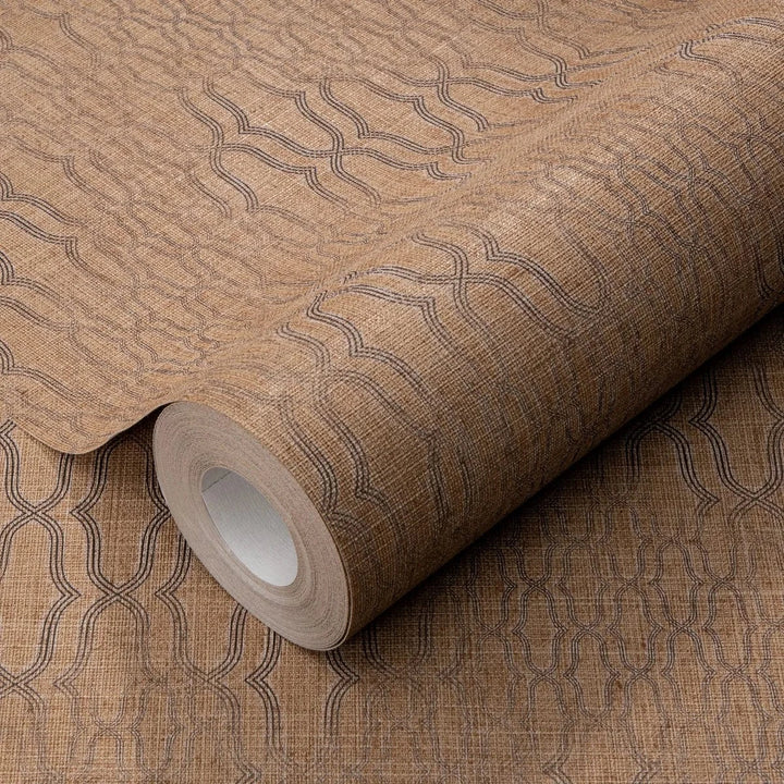 Brūnas ornamenta tapetes ar matētu efektu piemērotas mājīgam un siltam interjeram.