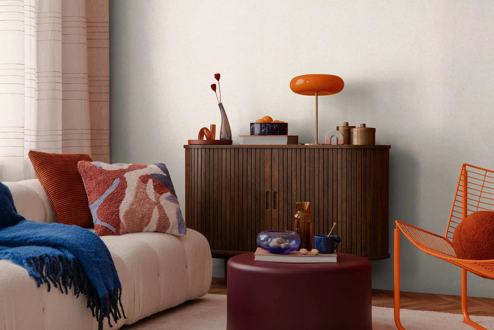 Tapetēm ir atturīgs, ļoti smalks auduma raksts, kas atgādina dabiskas lina tekstūras. Krāsu gamā dominē patīkams, gaiši smilškrāsas toņs, kas rada ļoti neitrālu un siltu efektu. Delikātā tekstūra piešķir virsmai smalku dzīvīgumu, neuzbāzoties. Neuzbāzīgais dizains rada mieru un pieticību, padara telpas draudzīgākas un ar smilškrāsas toņiem rada harmonisku un aicinošu atmosfēru. Ideāli piemērots mūžīgam, minimālistiskam interjeram, kas uzsver delikātas struktūras un maigu gaismas spēli.