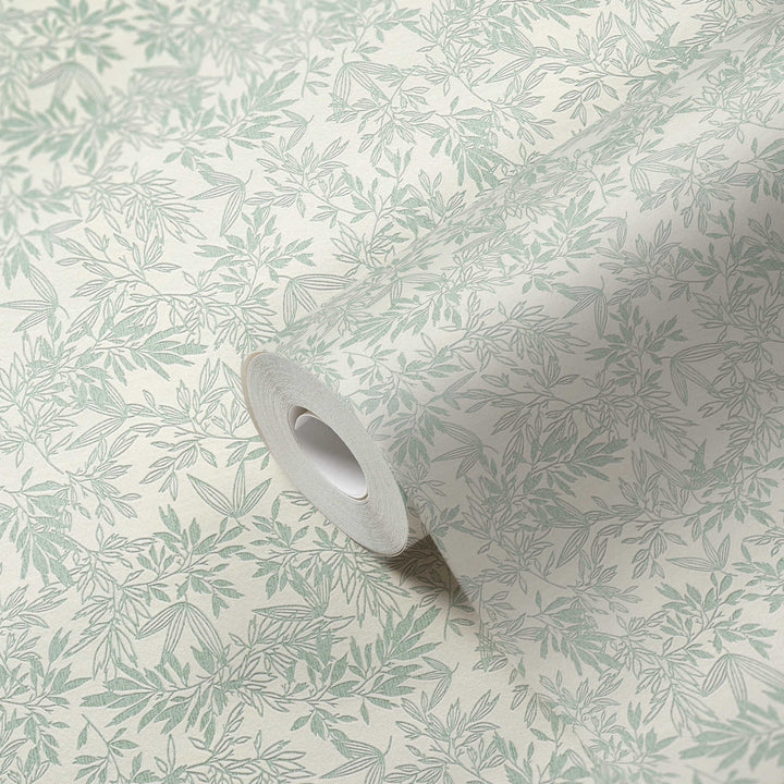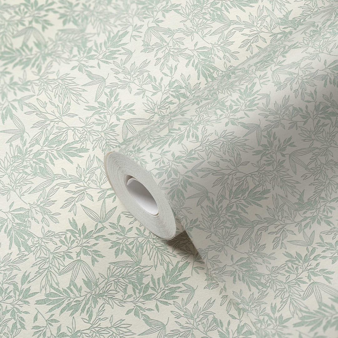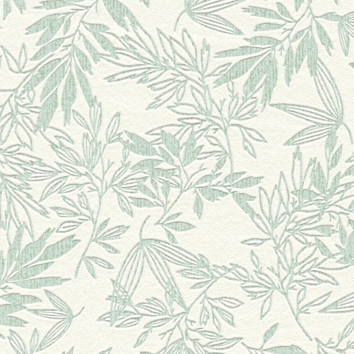 Matētas tapetes ar lapu rakstu: zaļā krāsā, 1372212