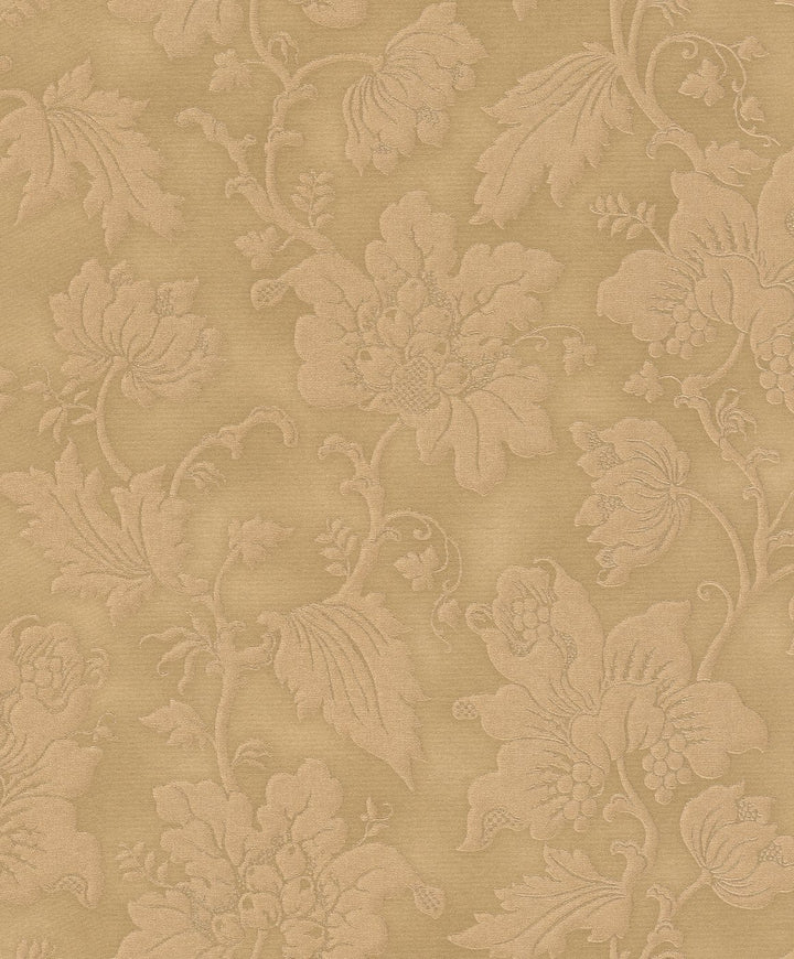 Tapetes ar ziedu ornamentu klasiska stilā, zeltā krāsā, RASCH, 2132150