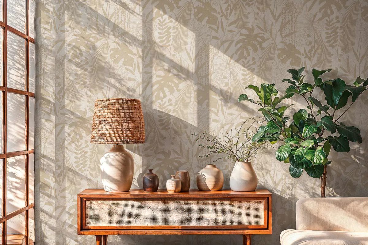 Klasiska stila botāniskās tapetes ar smalku lapu ornamentu. Tās ir izturīgas un viegli mazgājamas ar ziepjūdeni. Uzklāšana prasa 53 cm raksta saskaņošanu. Vienkrāsainais bēšais dizains ar vieglu spīdumu un tekstūru padara tās universālas – tās derēs gan guļamistabā, gan viesistabā. Raksts ir neuzbāzīgs un plūstošs, radot harmonisku un sakārtotu sienas plakni.