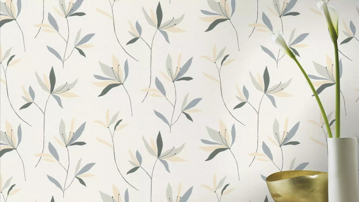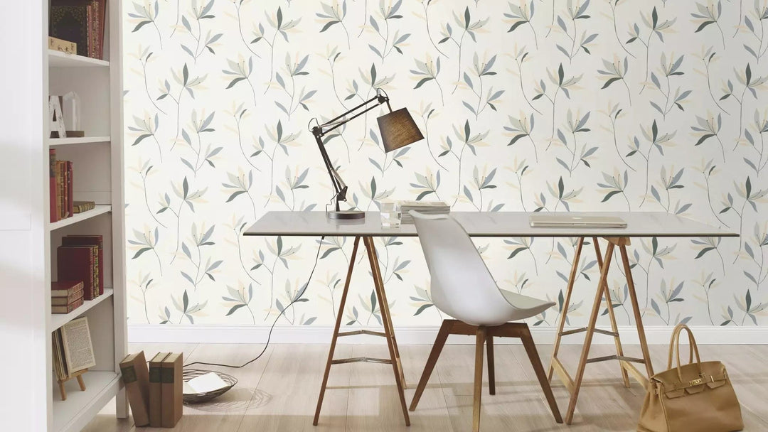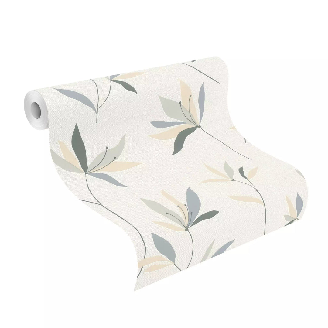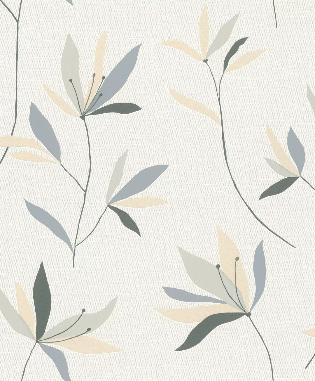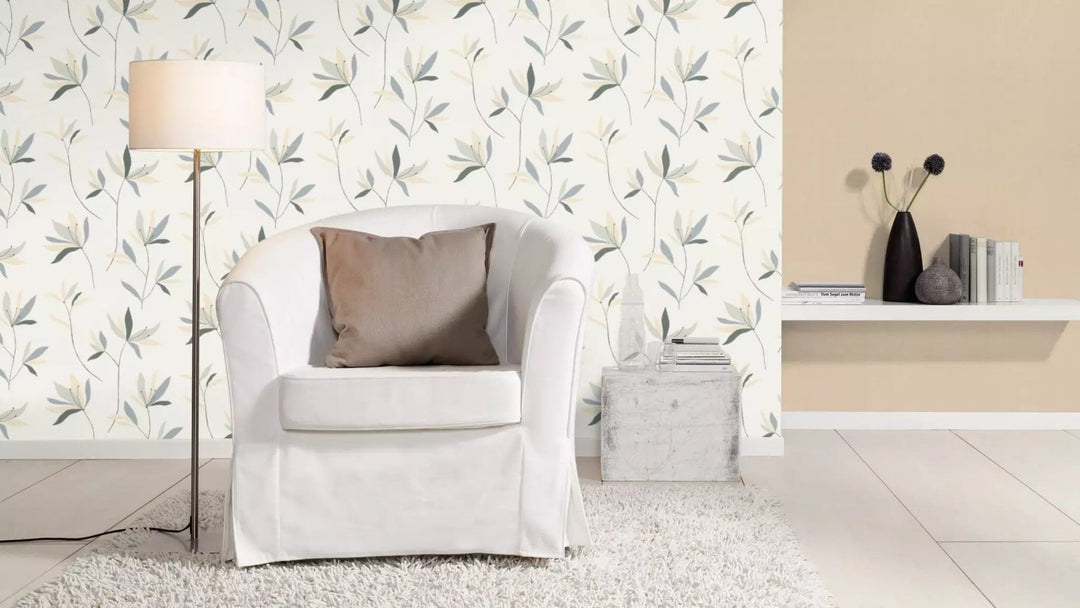Tapetes RASCH ar elegantu tekstila faktūru un lapām, krēmkrāsā, 2326333