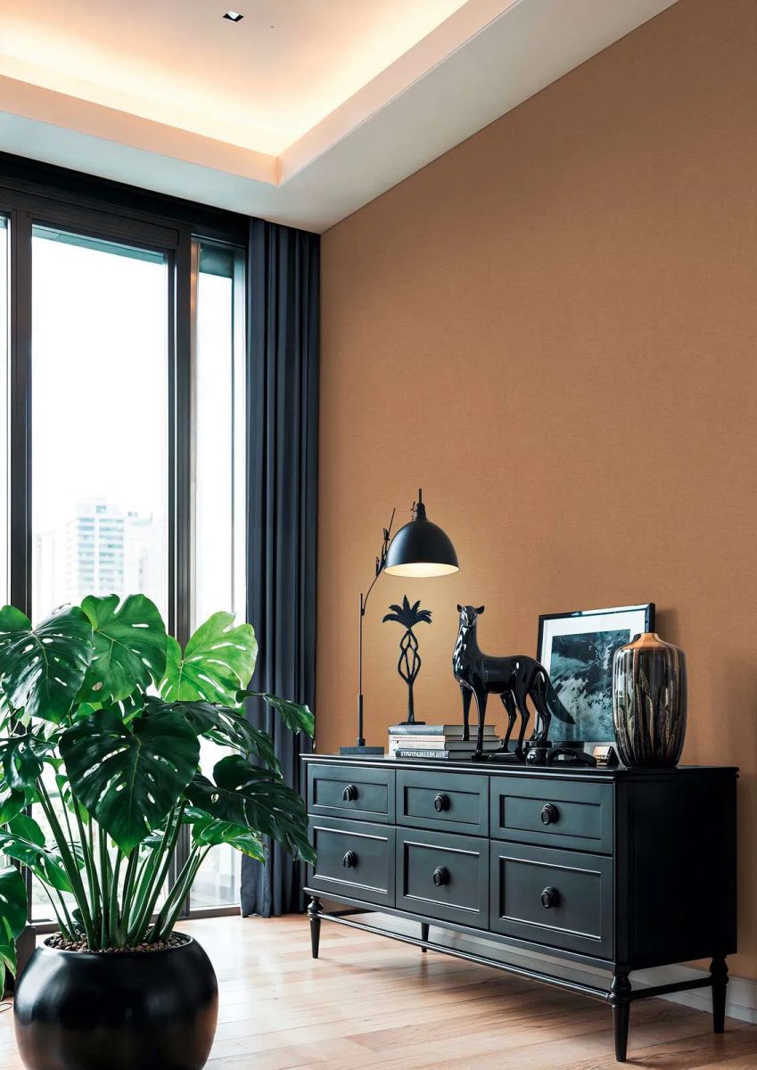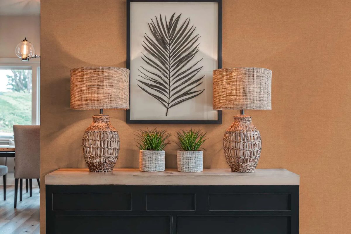 Izturīgas un viegli kopjamas tapetes ar matētu virsmu. Tās neizbalē saulē un ir noturīgas pret skrāpējumiem. Uzklāšanu atvieglo tas, ka nav jāmeklē raksta sakritība starp loksnēm. Vizuāli tapetes atgādina dabisku linu audumu. Brūnais tonis ir piesātināts un elegants, piešķirot sienām dziļumu un patīkamu, teksturētu sajūtu. Šis dizains lieliski papildina dabiskus interjera elementus un koka mēbeles.