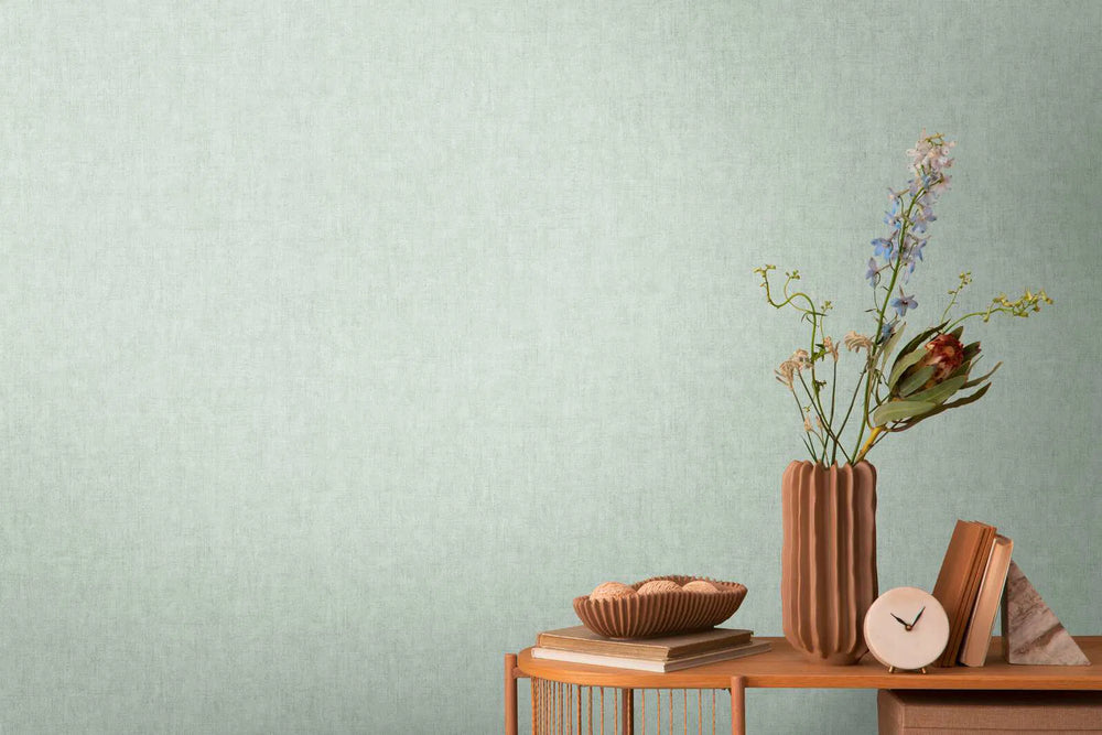 Vienkrāsainas tapetes ar tekstila faktūru zaļos toņos, 2325635
