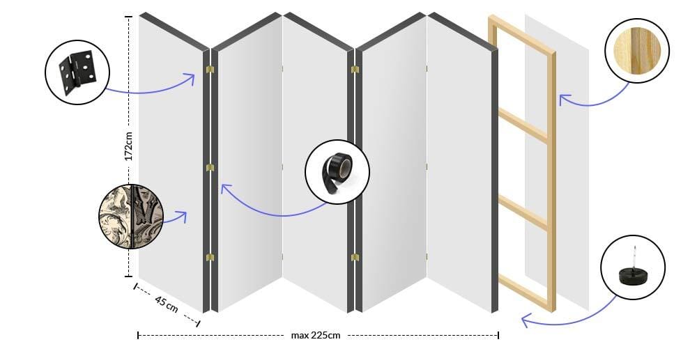 Viegla, bet stabila koka konstrukcija ļauj ātri un droši reorganizēt jebkuru telpu. Plašs dizainu klāsts garantē, ka aizslietnis iederēsies jebkurā interjerā.